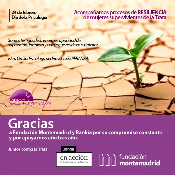 Desde Proyecto ESPERANZA el servicio de Salud Psicológica ofrece a las mujeres víctimas de Trata como uno de los tres ejes del departamento de Salud con el fin de lograr su bienestar emocional desde terapias individuales y sesiones grupales.